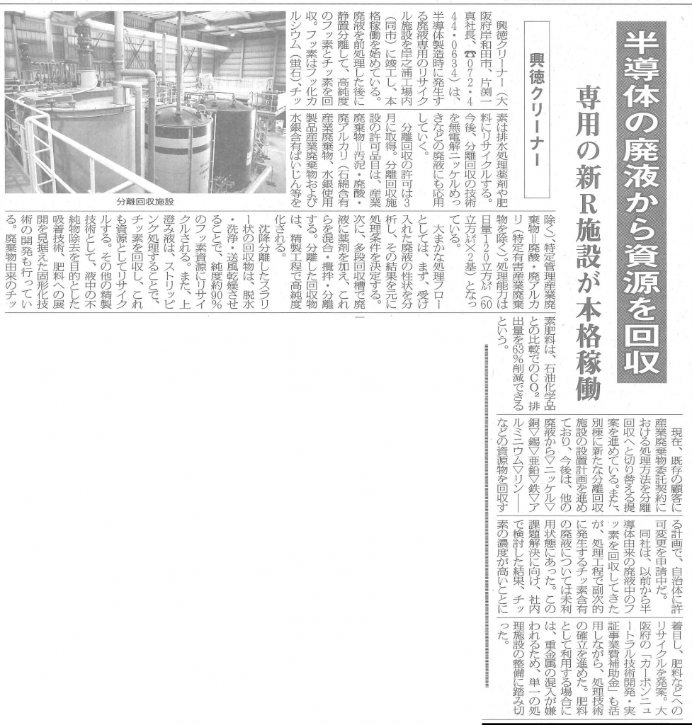 「半導体の廃液から資源を回収 -専用の新R施設が本格稼働-」