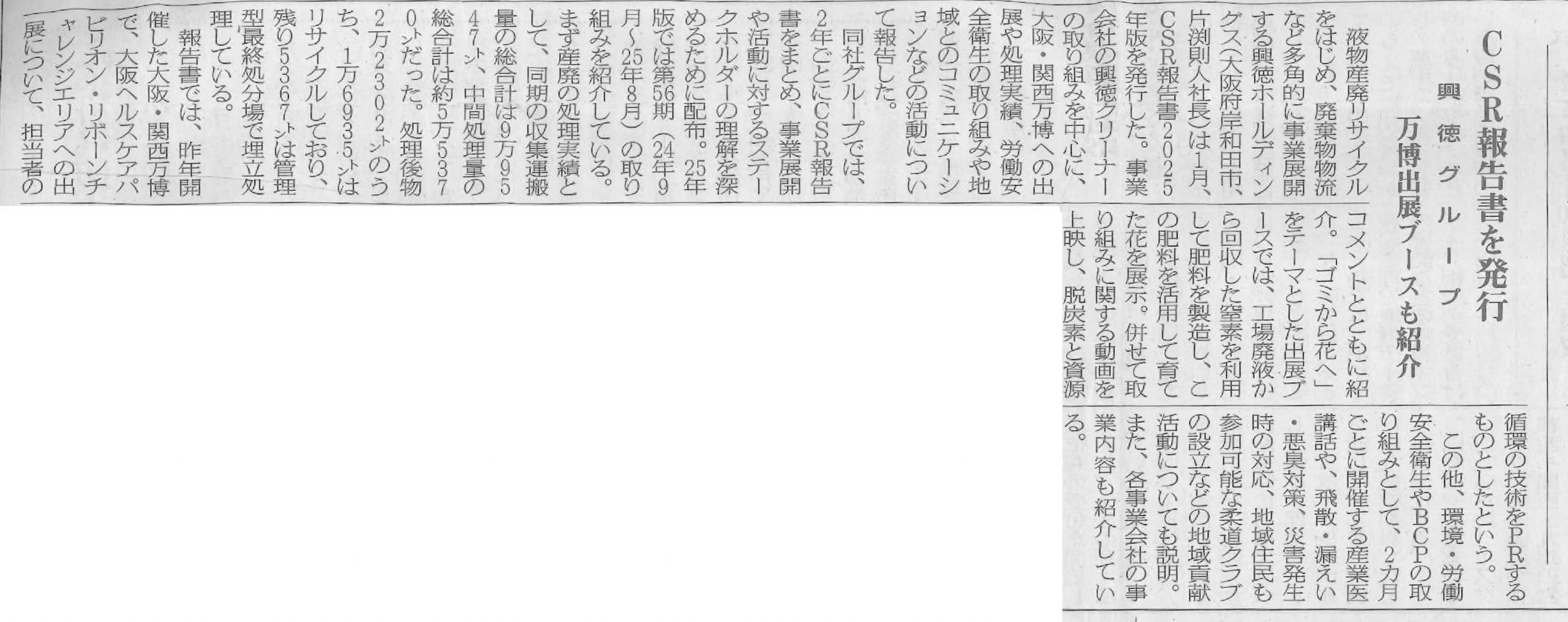 「CSR報告書を発行-興徳グループ 万博出典ブースも紹介-」 循環経済新聞 1759号 (3)