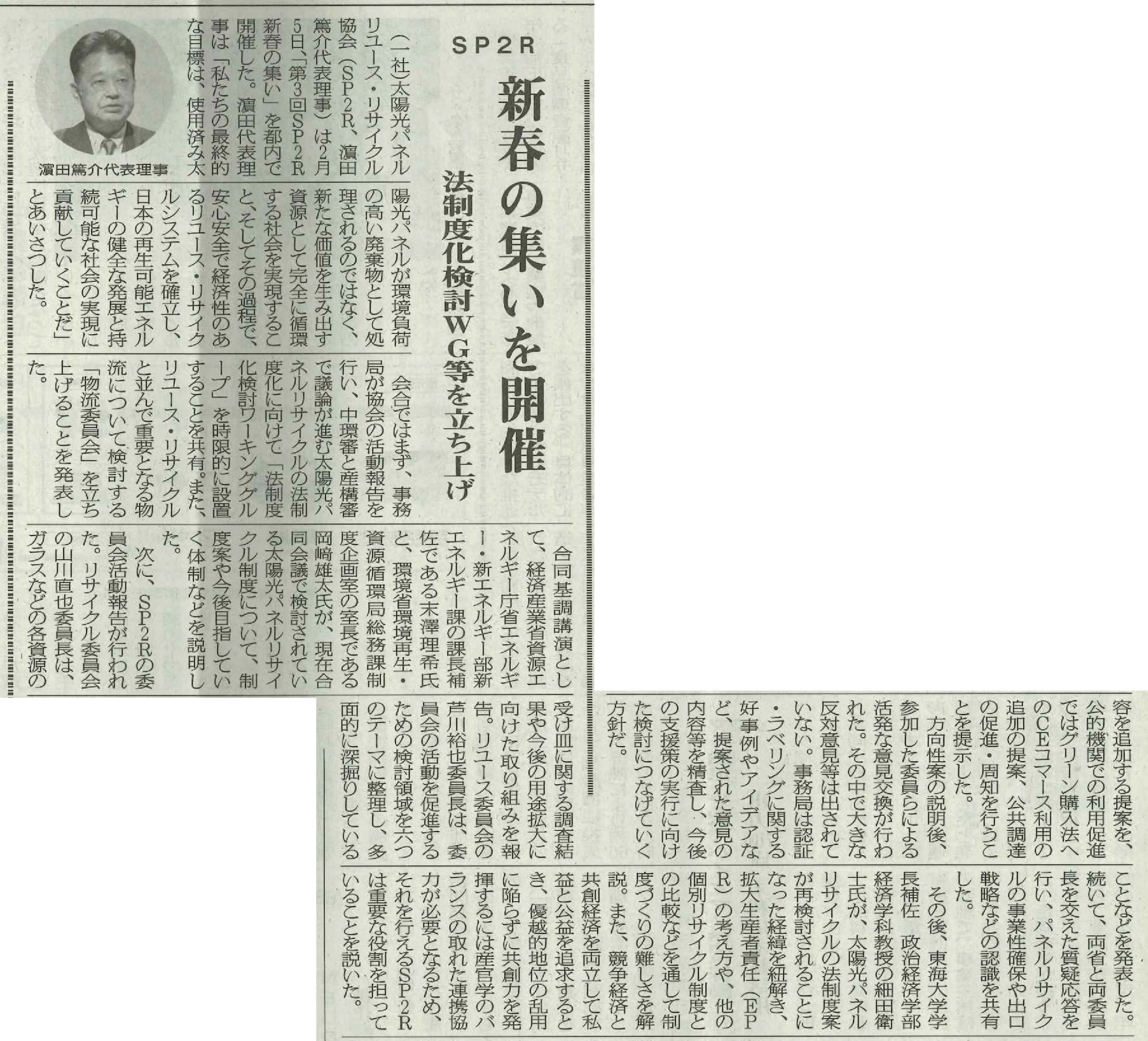 「SP2R 新春の集いを開催 法制度化検討WG等を立ち上げ」 循環経済新聞1762号(3)